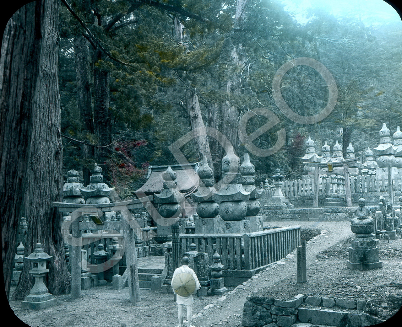 Beschreibung: Friedhof vermutlich am Tokaido, die Haupstraße zwischen den Kaiser­stätten Tokyo (Tokio) und Kyoto.