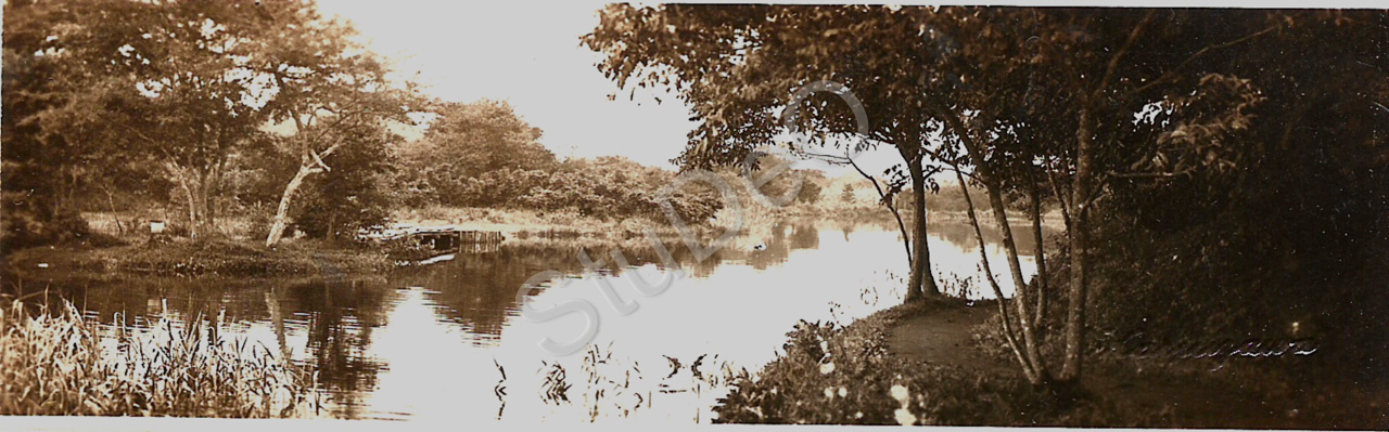 Beschreibung: Flusslandschaft mit Bäumen.