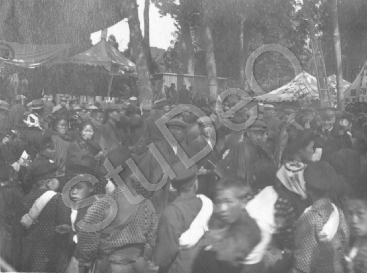 Beschreibung: Reger Besuch von Japanern im Vergnügungspark der Welt­ausstellung Bando im Kriegsge­fan­genenlager Bando.