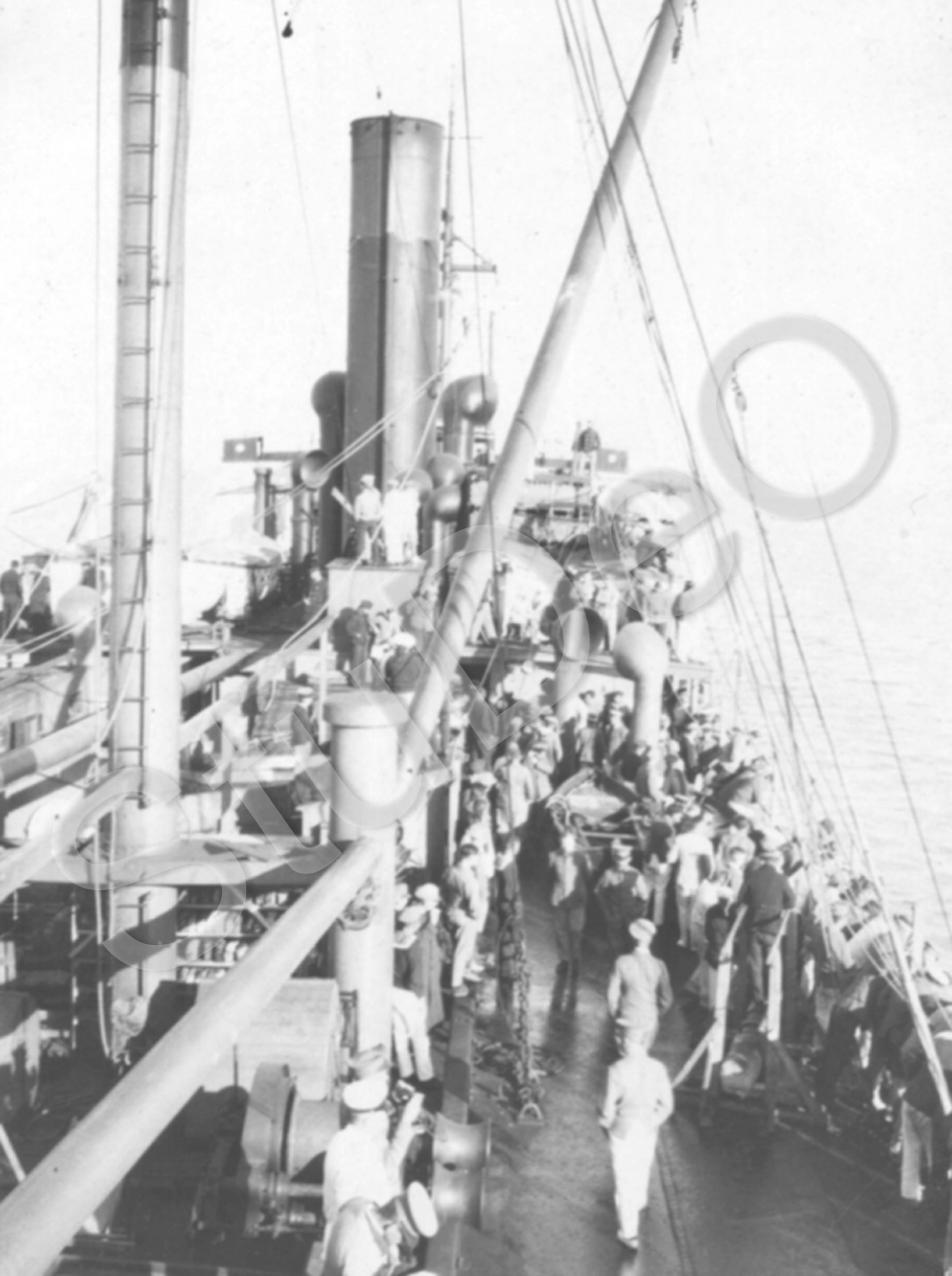 Beschreibung: Freigelassene Dt. Gefangenen aus Japan auf dem Dampfer Hofuku Maru bei einem Vortrag an Bord. 56 „christliche“ Seefahrt von Kobe nach Wilhelmshafen  31.12.1919 – 24.2.1920.