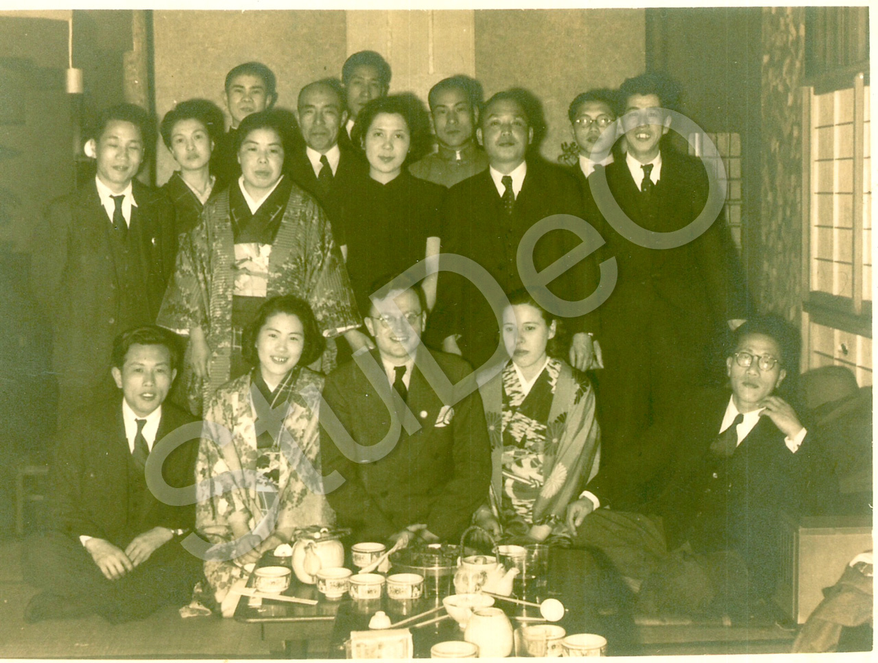 Beschreibung: Belegschaft der Win­ckler & Co. Werke in Yokohama, Kobe oder Nagoya bei einer Teezeremonie.