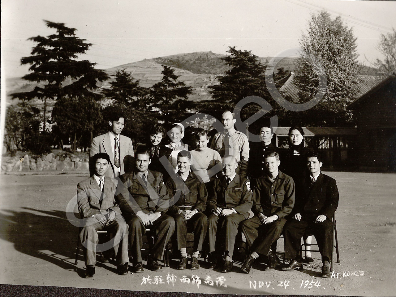 Beschreibung: Mitglieder des Deut­schen Rote Kreuz Hospi­tals und der US-Army am 24.11.1954.