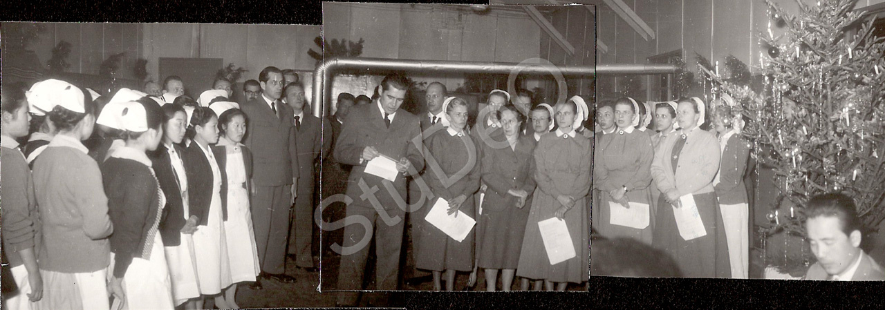 Beschreibung: Koreanische Schülerinnen aus der Schwesternschule und Schwestern als Zuschauer einer Weih­nachtsfeierlichkeit im Rote Kreuz Hospitals Pusan am 25.12.1954.