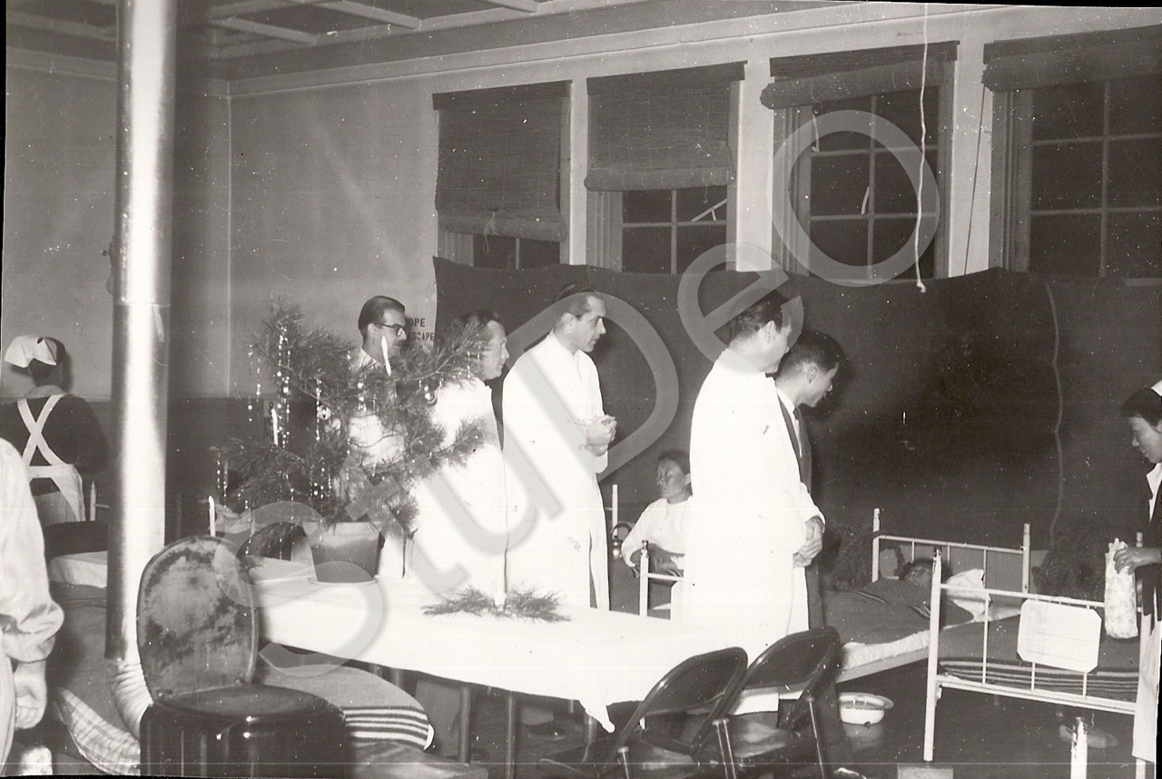 Beschreibung: Ärzte gehen anlässlich Weihnachten in einen Krankensaal im Rote Kreuz Hospital Pusan am 25.12.1954.