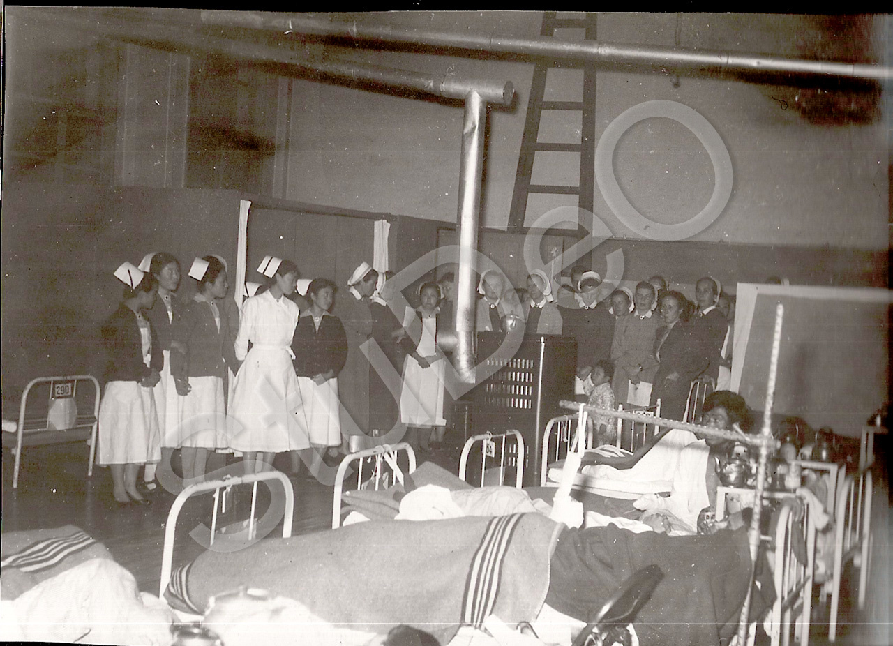 Beschreibung: Schwestern anlässlich Weihnachten in einem Krankensaal im Rote Kreuz Hospital Pusan am 25.12.1954.