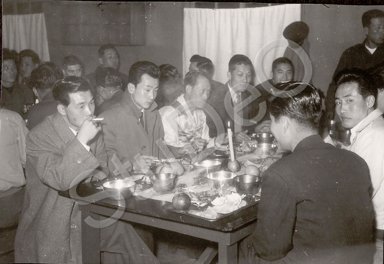 Beschreibung: Koreanische Ärzte und Gäste bei Neujahrsessen? Rote Kreuz Hospital Pusan.