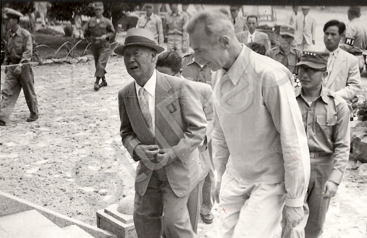 Beschreibung: Besuch vom koreanischen Staatspräsident Syngman Rhee im Deutschen Rote Kreuz Hospital Pusan, Prof. Günther Huwer begleiten ihn am 10.01.1955.