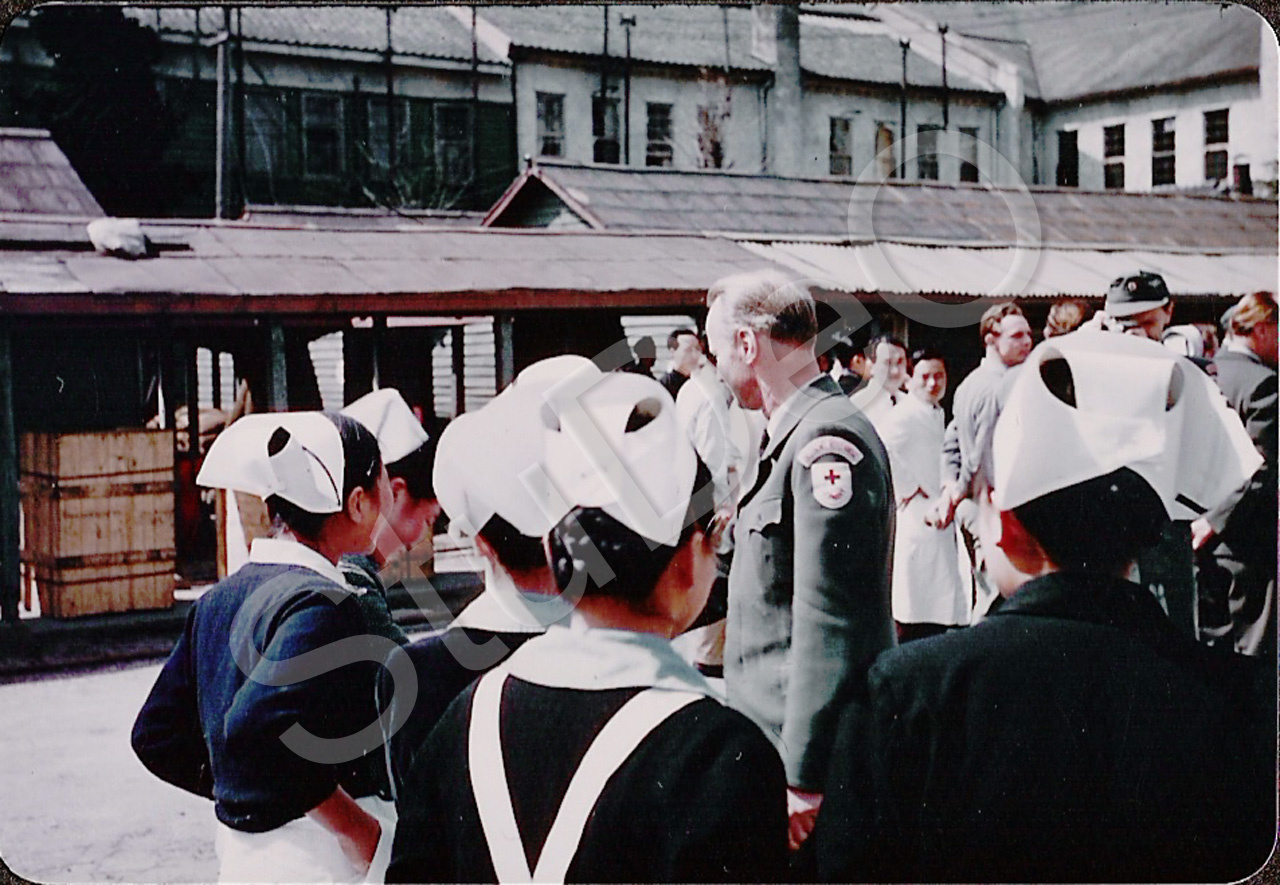 Beschreibung: Dr. Drescher, koreanische Schwestern des Deut­schen Rote Kreuz Hospi­tals, Ärzte am 15.11.1955.