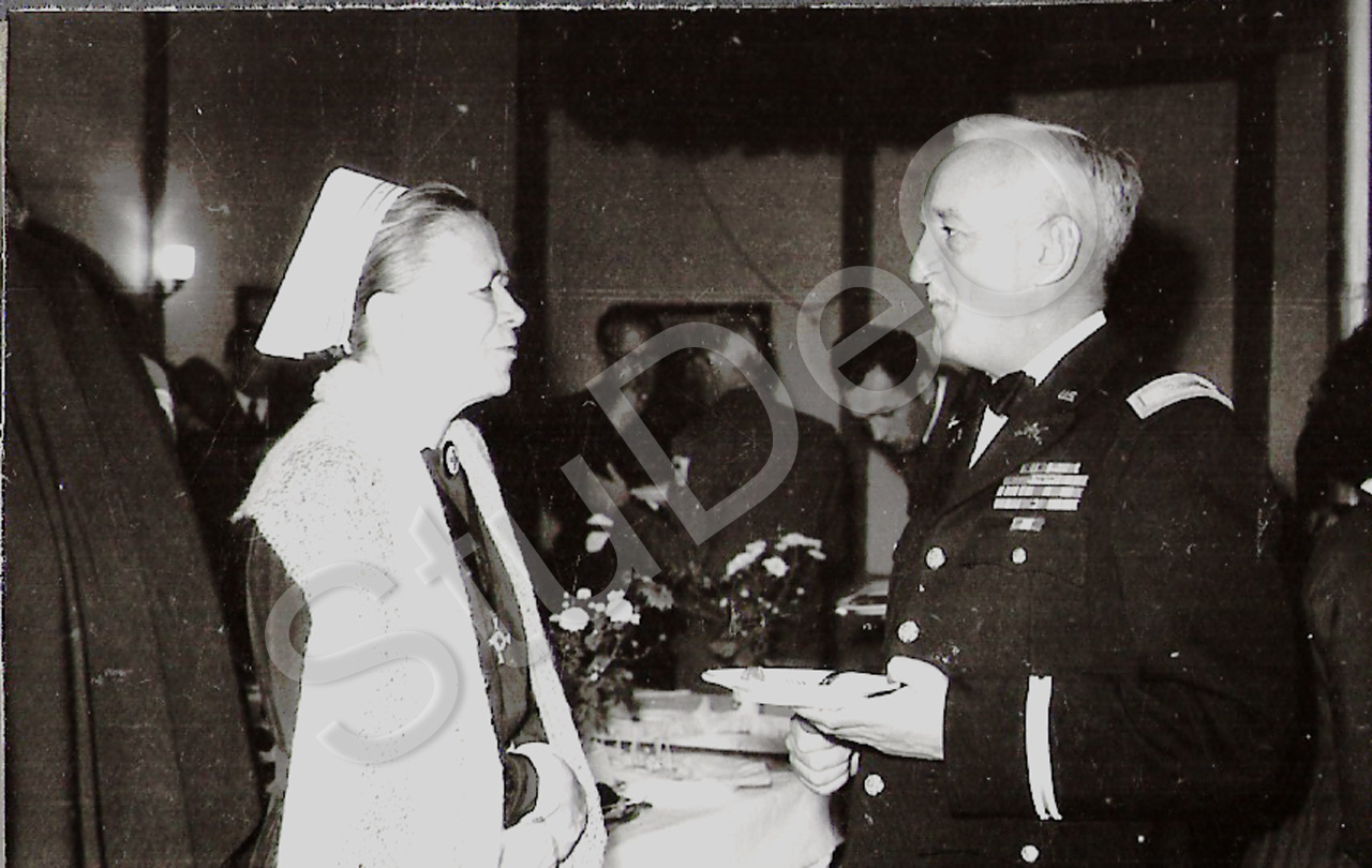 Beschreibung: Generaloberin Fr. v. Oertzen im Deutschen Rotes Kreuz Hospitals im Gespräch mit US-Army-Offizier am 17.02.1957.