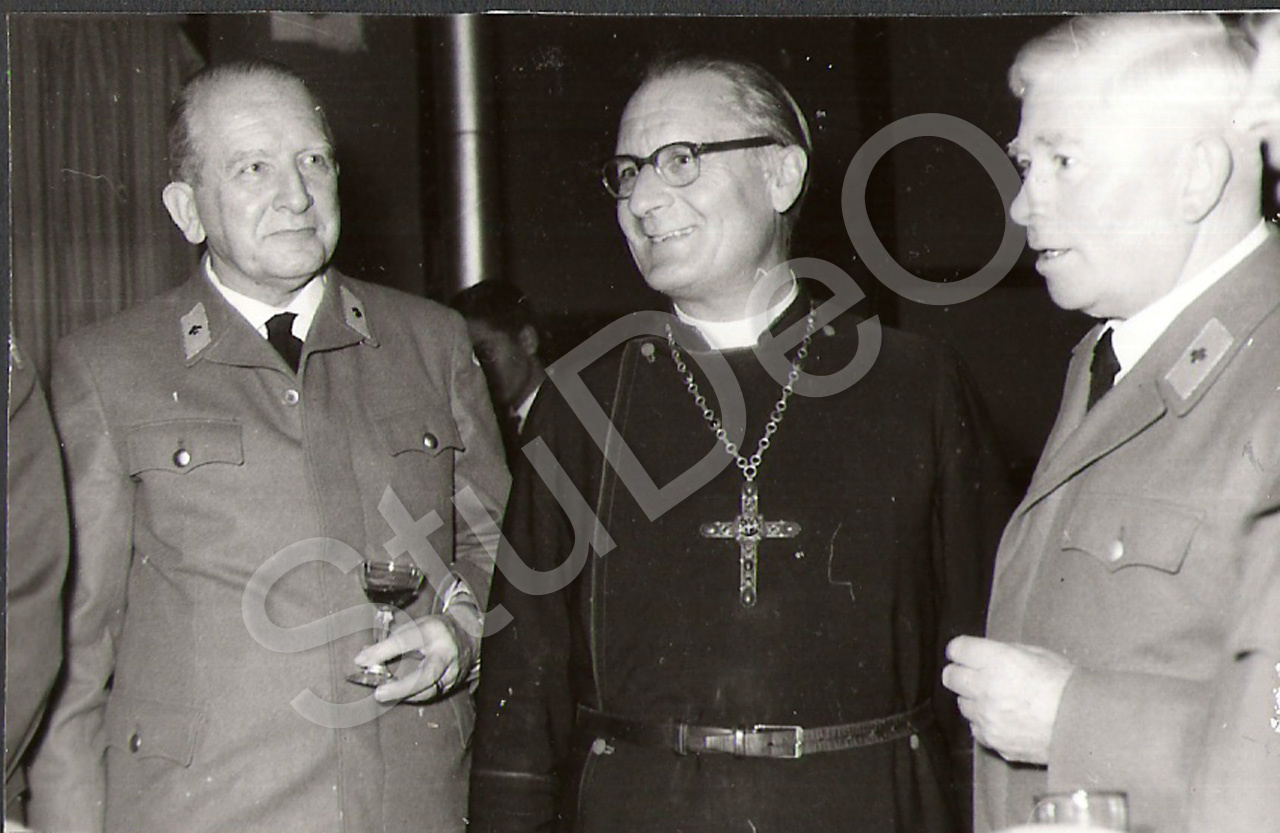 Beschreibung: v.li Herr Ritgen, Bischof der anglikan. Kirche und  Bundesarzt Burmann im Gespräch im Deut­schen Rotes Kreuz Hospital am 17.02.1957.