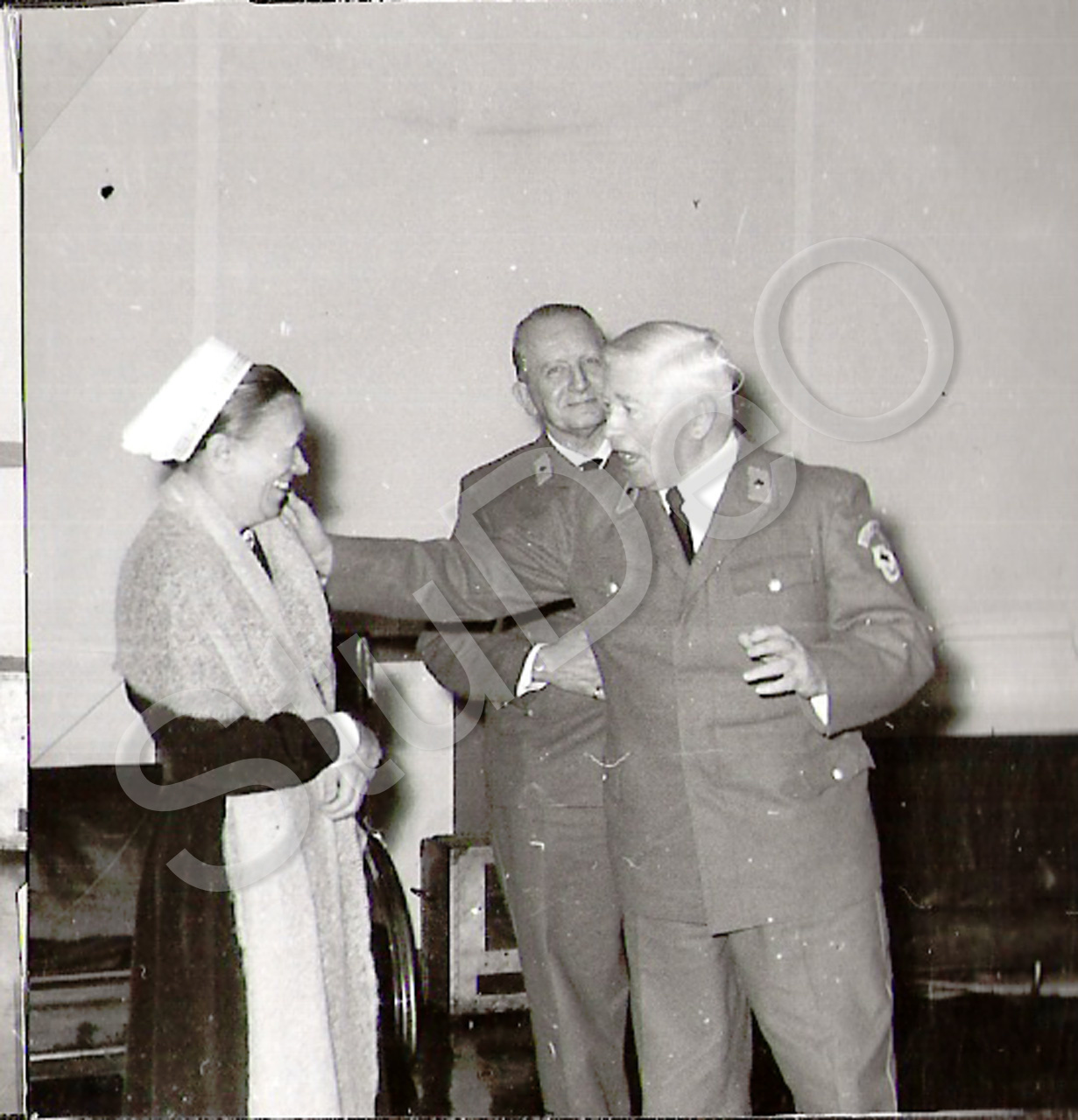 Beschreibung: Bundesarzt Burmann (re.) und Generaloberin Fr. von Oertzen aus Deut­schland zu Besuch beim Rote Kreuz Hospital Pusan.