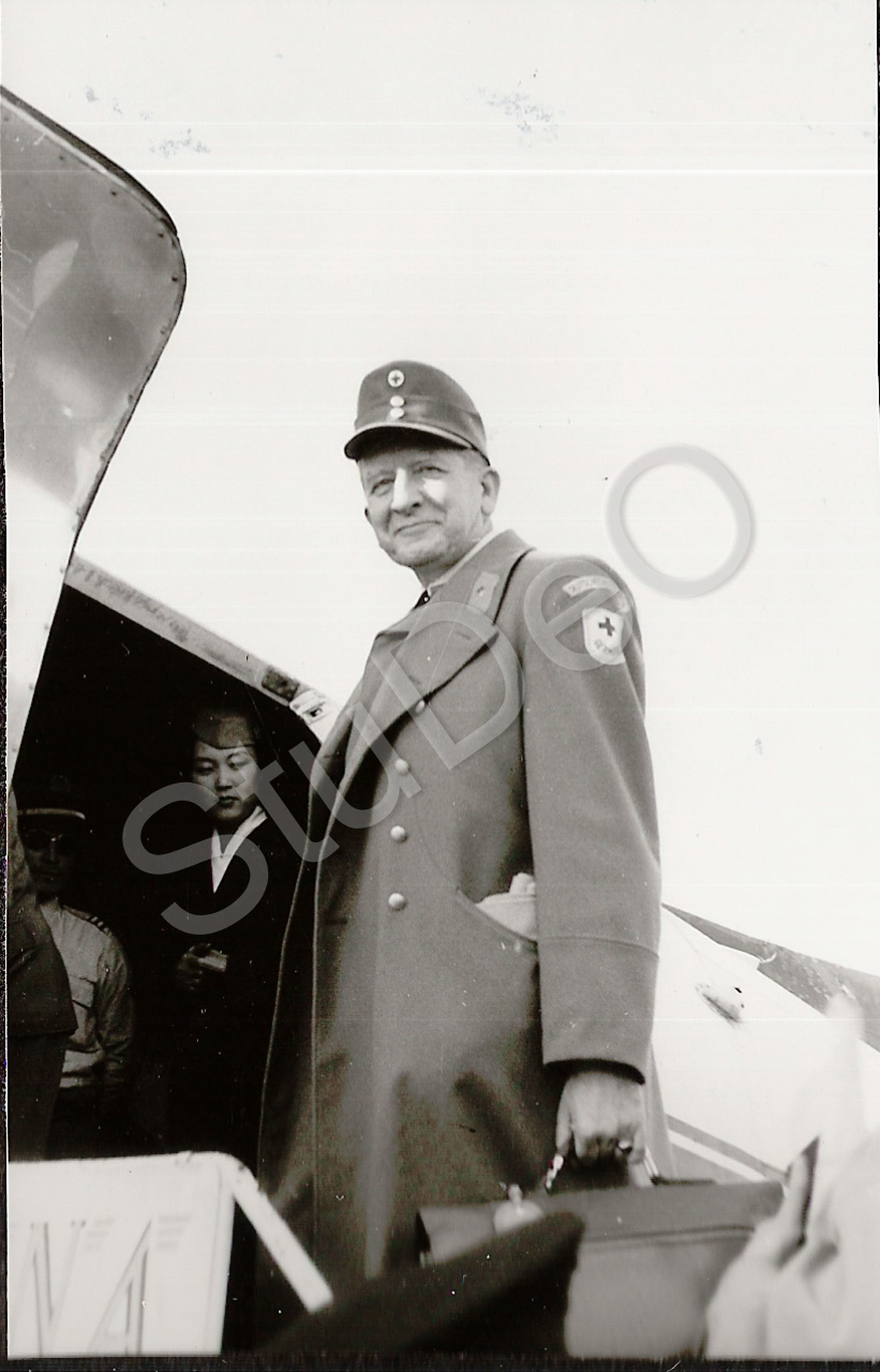 Beschreibung: Abschied vom Rote Kreuz Hospitals in Pusan. Herr ? besteigt das Flug­zeug.