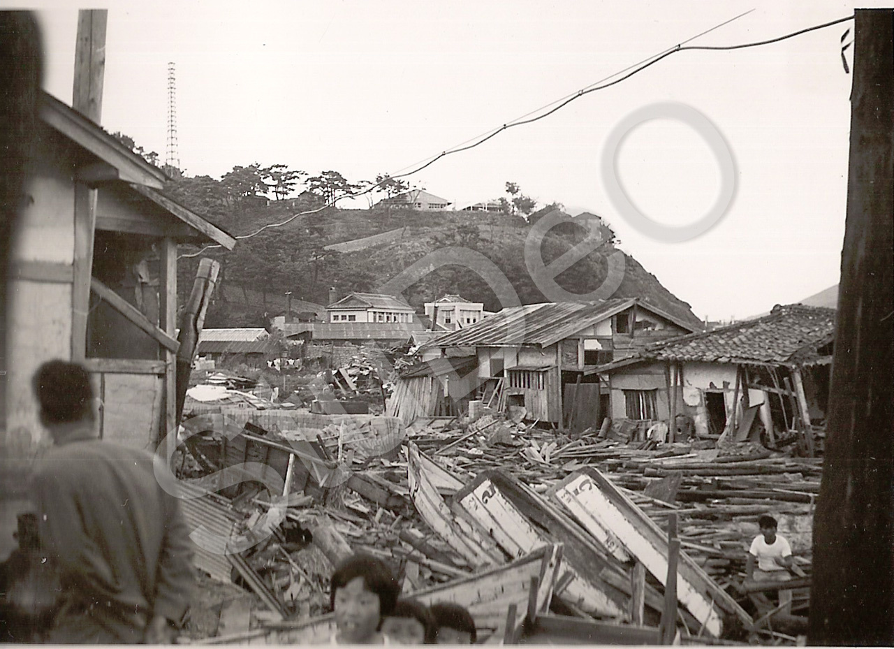 Beschreibung: Blick in die zerstörte Häuserzeile an der Küste am 18.09.1959.