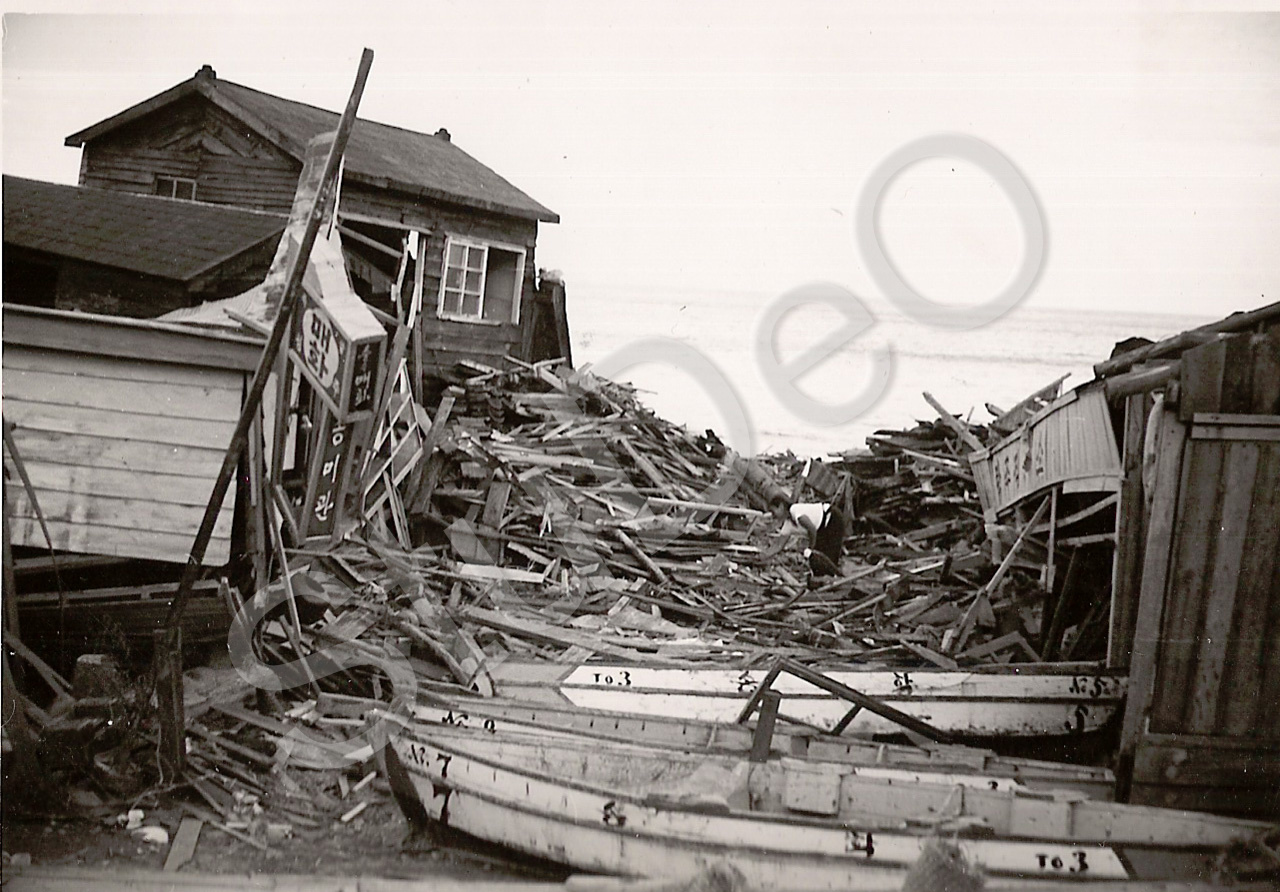 Beschreibung: Zerstörte Boots-Häuser in Songdo am 18.09.1959.