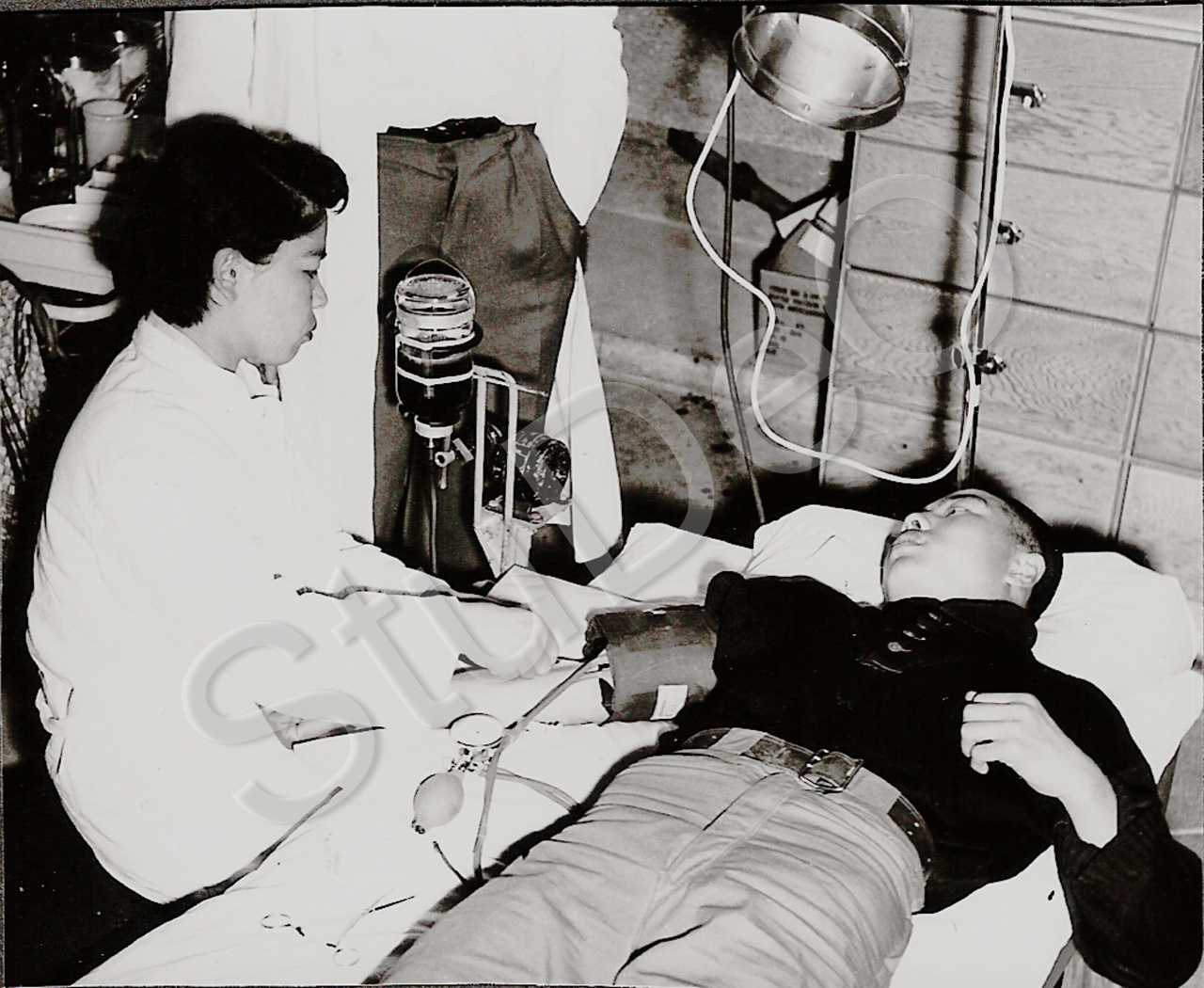 Beschreibung: Dt. Rote Kreuz Hospitals Pusan. Patientenbehandlung in der Laborabteilung.