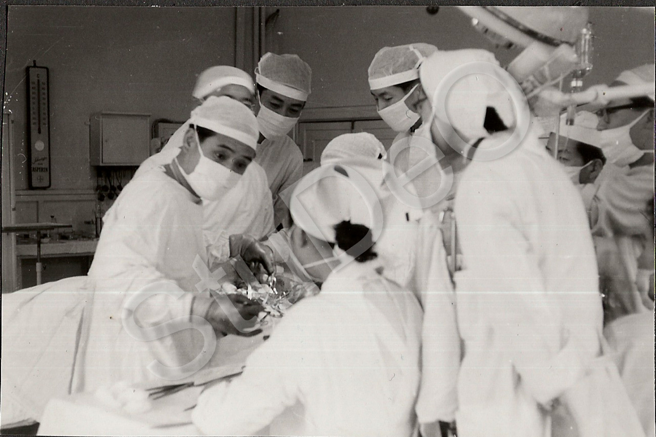 Beschreibung: Dt. Rote Kreuz Hospitals Pusan. Korenische Ärzte und Schwestern bei der Operation.