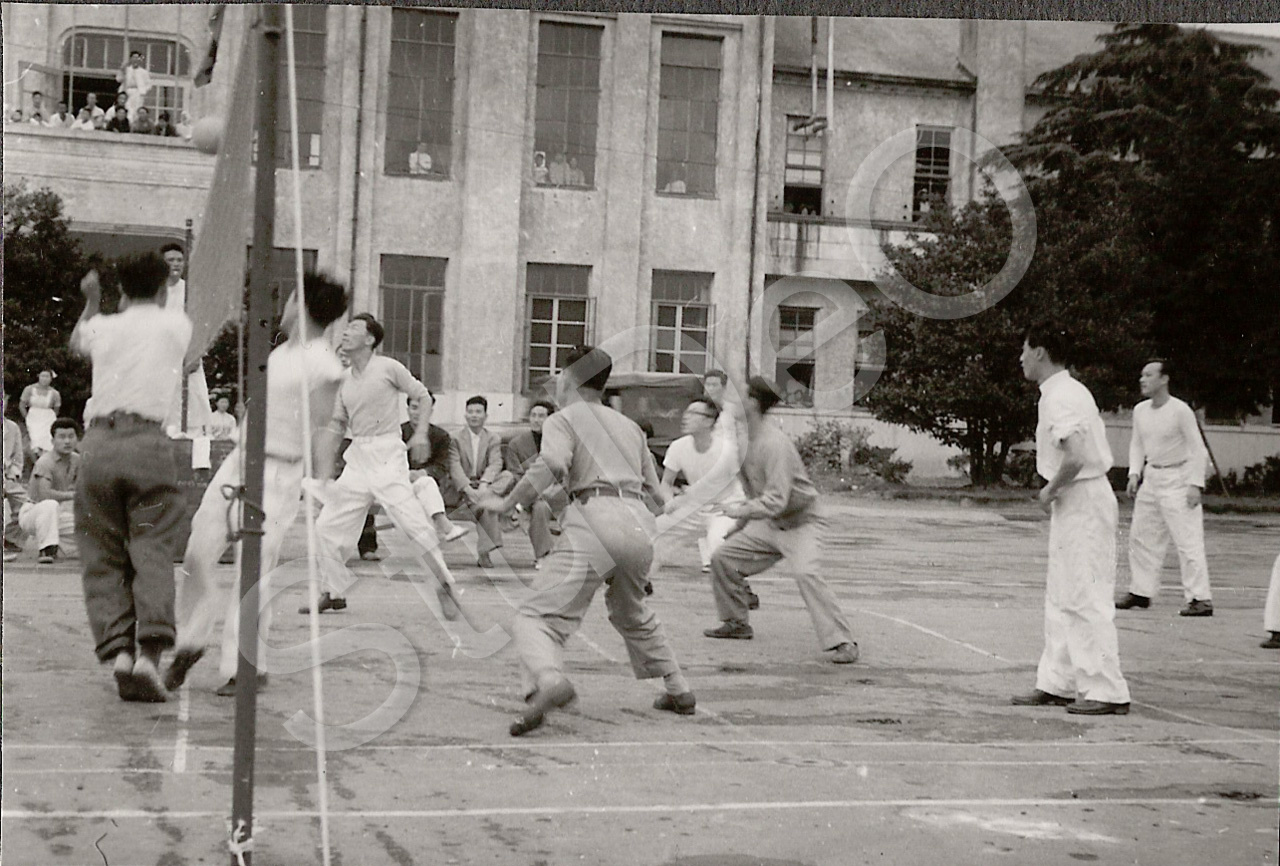 Beschreibung: Dt. Rote Kreuz Hospitals Pusan. „Freizeitgestaltung“ Ballspielen im Hospitalgelände.