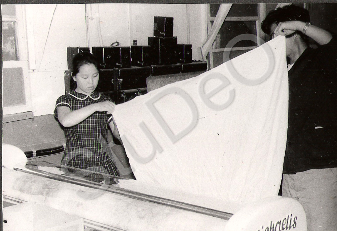Beschreibung: Dt. Rote Kreuz Hospitals Pusan. „Wäscherei, Bügelstube“.