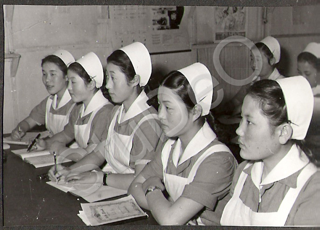 Beschreibung: Dt. Rote Kreuz Hospitals Pusan. „Schwesternschule“. Schwesternschü­ler im Unterricht.