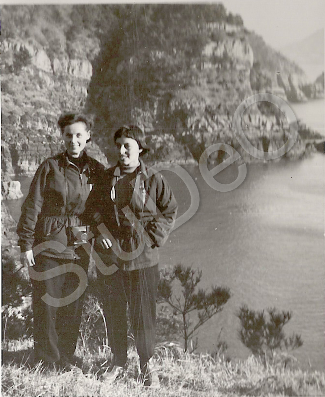 Beschreibung: Schwestern vom Rote Kreuz Krankenhaus Pusan an der Steilküste. Li. Eva Loppin, re. Frl. Löffler.