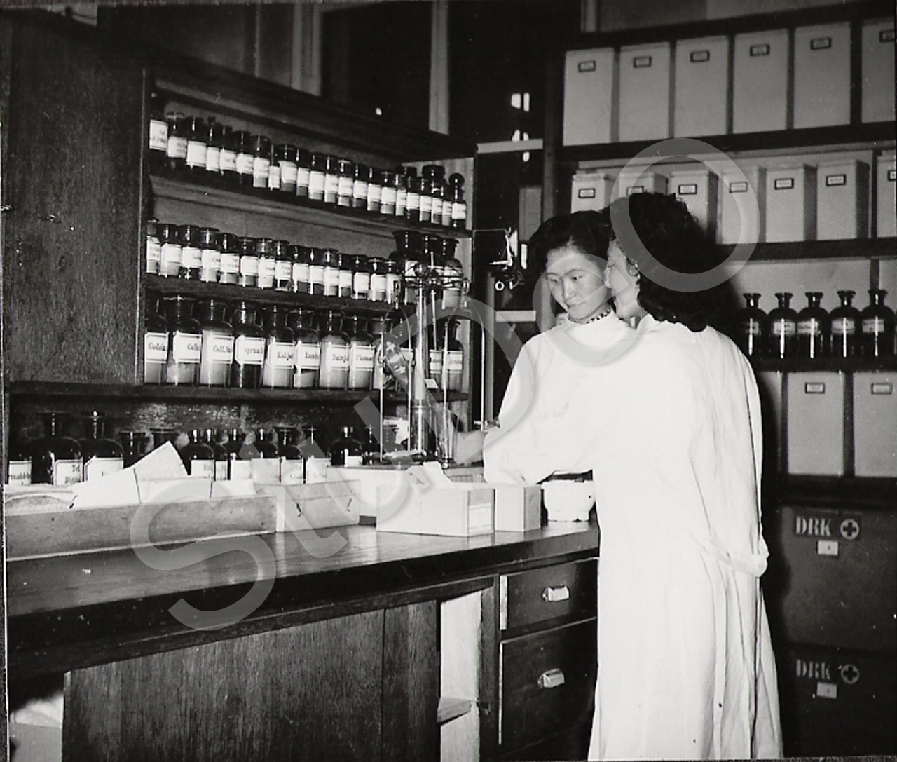 Beschreibung: Labor im Rote Kreuz Hospital Pusan. Ärztinen oder Laborantinnen.