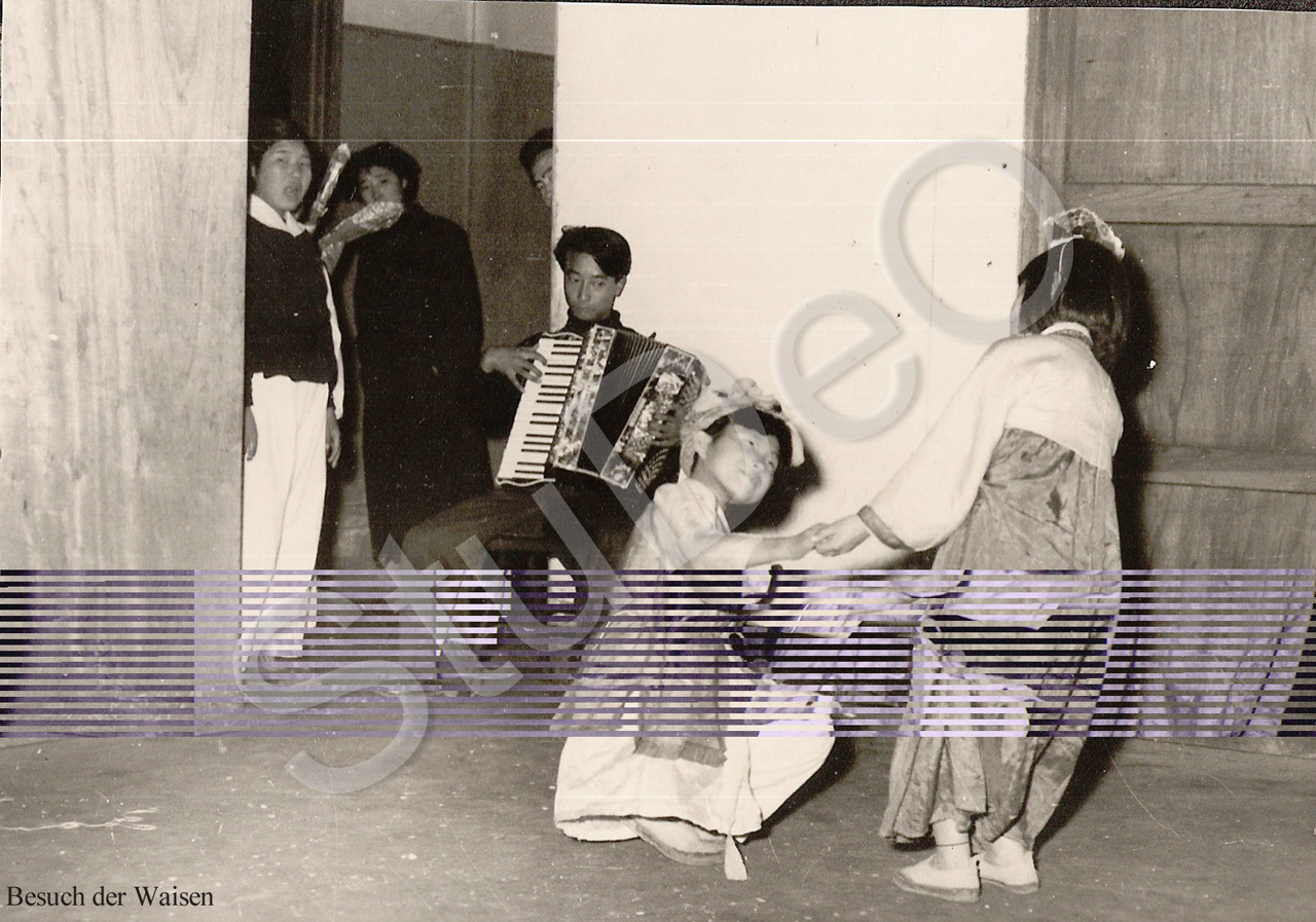 Beschreibung: Waisenkinder führen Tanze für Ärzte- und Schwesternschaft im Deutschen Rote Kreuz Hospital vor.