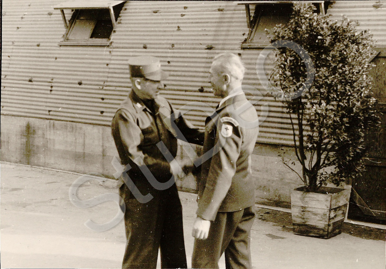 Beschreibung: Deutsches Rote Kreuz Hospitals Pusan. Chief surgeont Wergeland der US-Army begrüßt Prof. Günther Huwer.