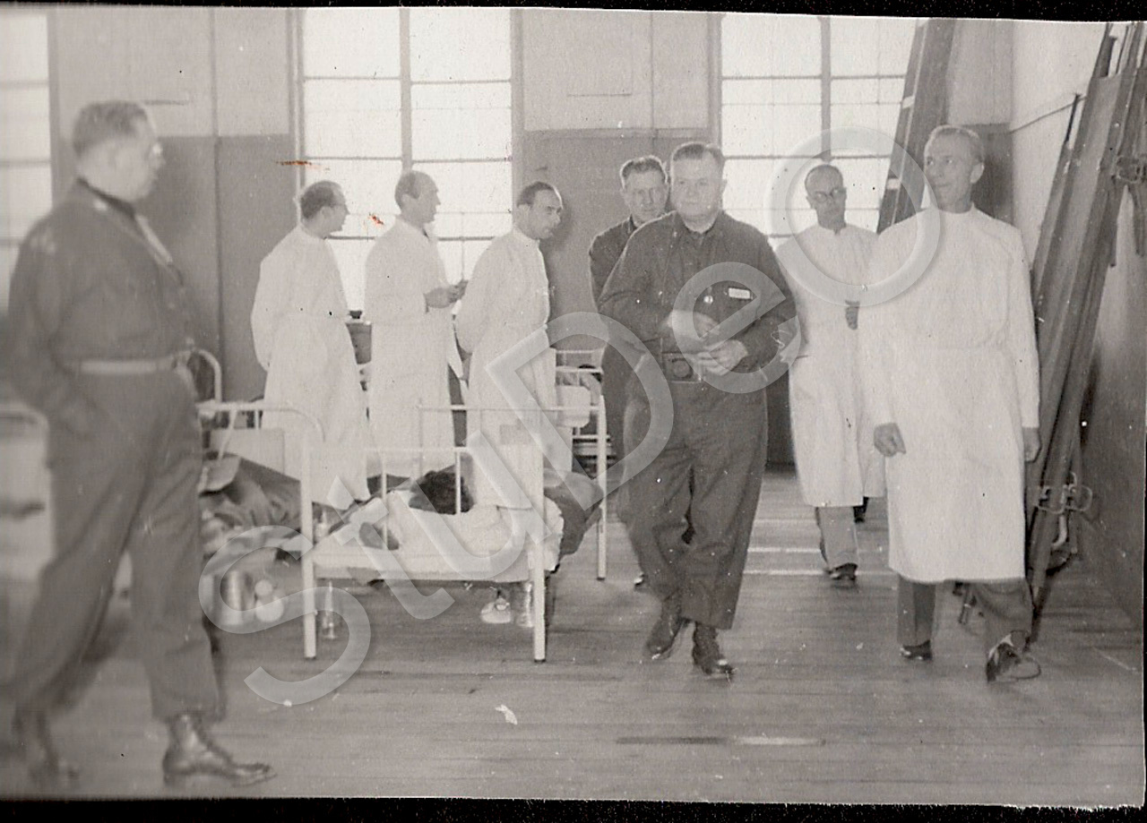 Beschreibung: US-Army Offiziere besichtigen mit Ärzten einen des Deut­schen Rote Kreuz Hospitals Pusan. Ganz re. Prof. Günther Huwer neben General Armstrong.
