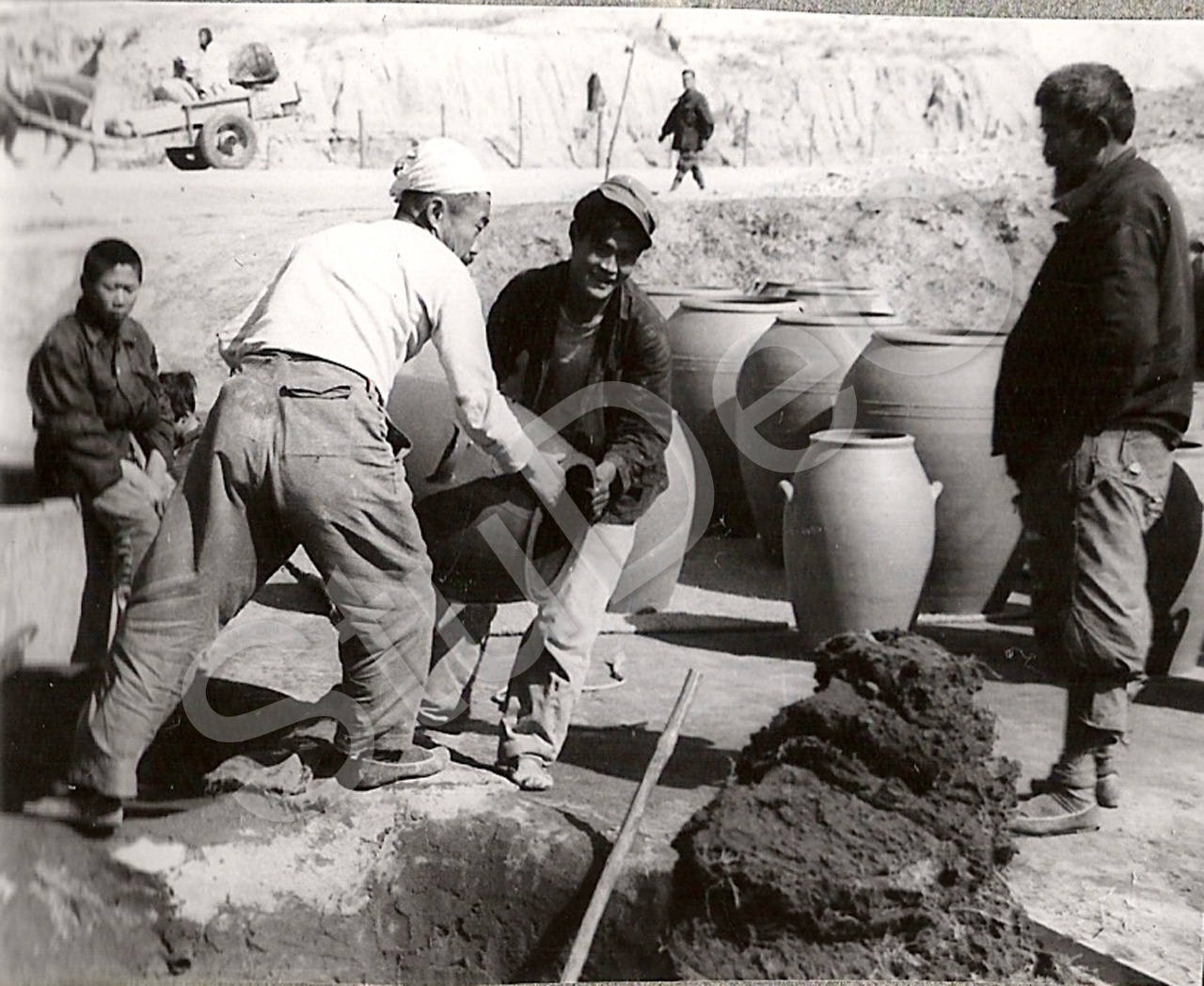 Beschreibung: Etappen bei der Herstellung von Gefäßen aus Tonerde, Seoul.