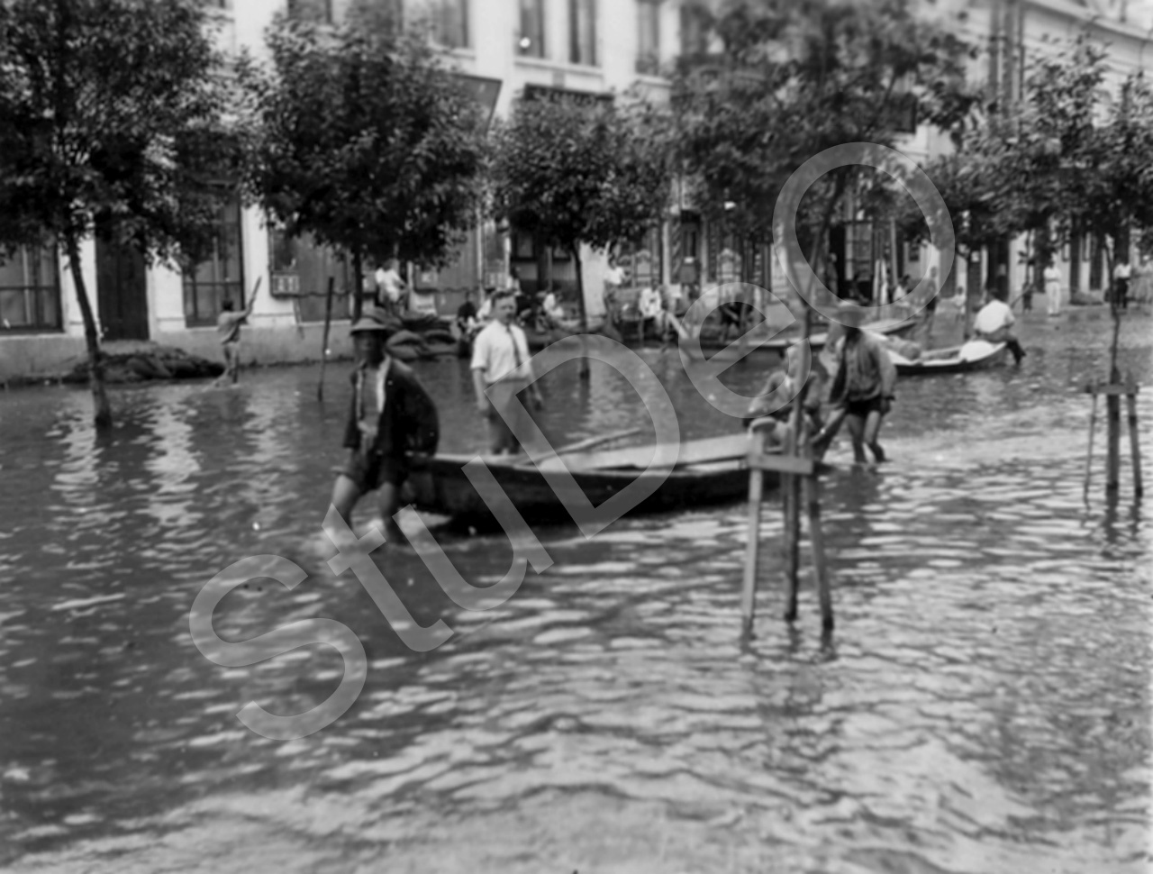 Beschreibung: Boote auf überschwemmter Straße.