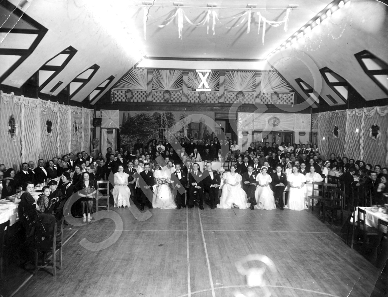 Beschreibung: Abitur-Ball der Y.M.C.A.-School in Harbin 1937 in einer Festhalle mit den Abiturienten und Gästen.