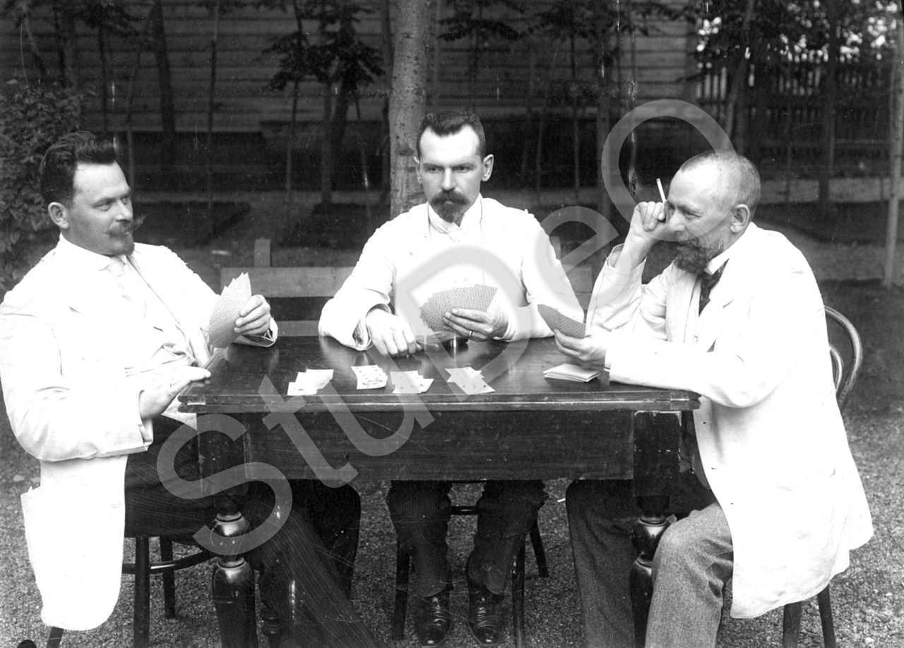 Beschreibung: Heinrich und Johann Peter Wormsbecher(Brüder) und Willy Scharrmann beim Kartenspiel.
