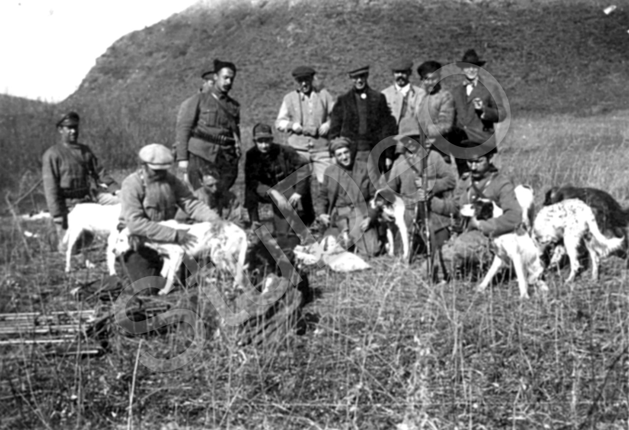 Beschreibung: Johannes Peter Wormsbecher mit Jagdgesellschaft und Hunden.