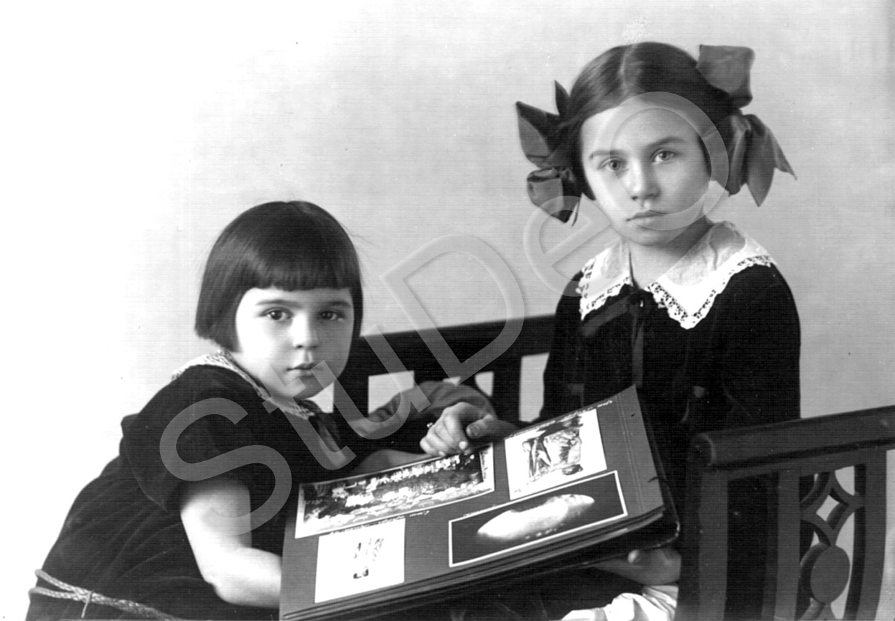 Beschreibung: die Schwestern Olga und Ludmilla Wormsbecher im Fotostudio.