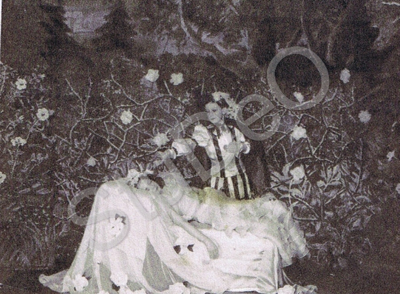 Beschreibung: Aufführung von Dornröschen in der Hindenburgschule in Harbin, Angelika Ponschab als Donröschen und Adolf Felsing als Prinz.