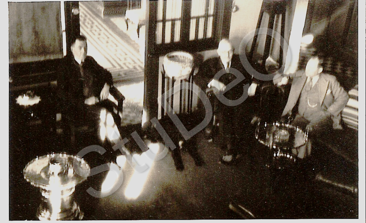 Beschreibung: Ernst Keining (Mitte) und Herr Stahlmann (rechts) im Foajier des Hotel Keining.