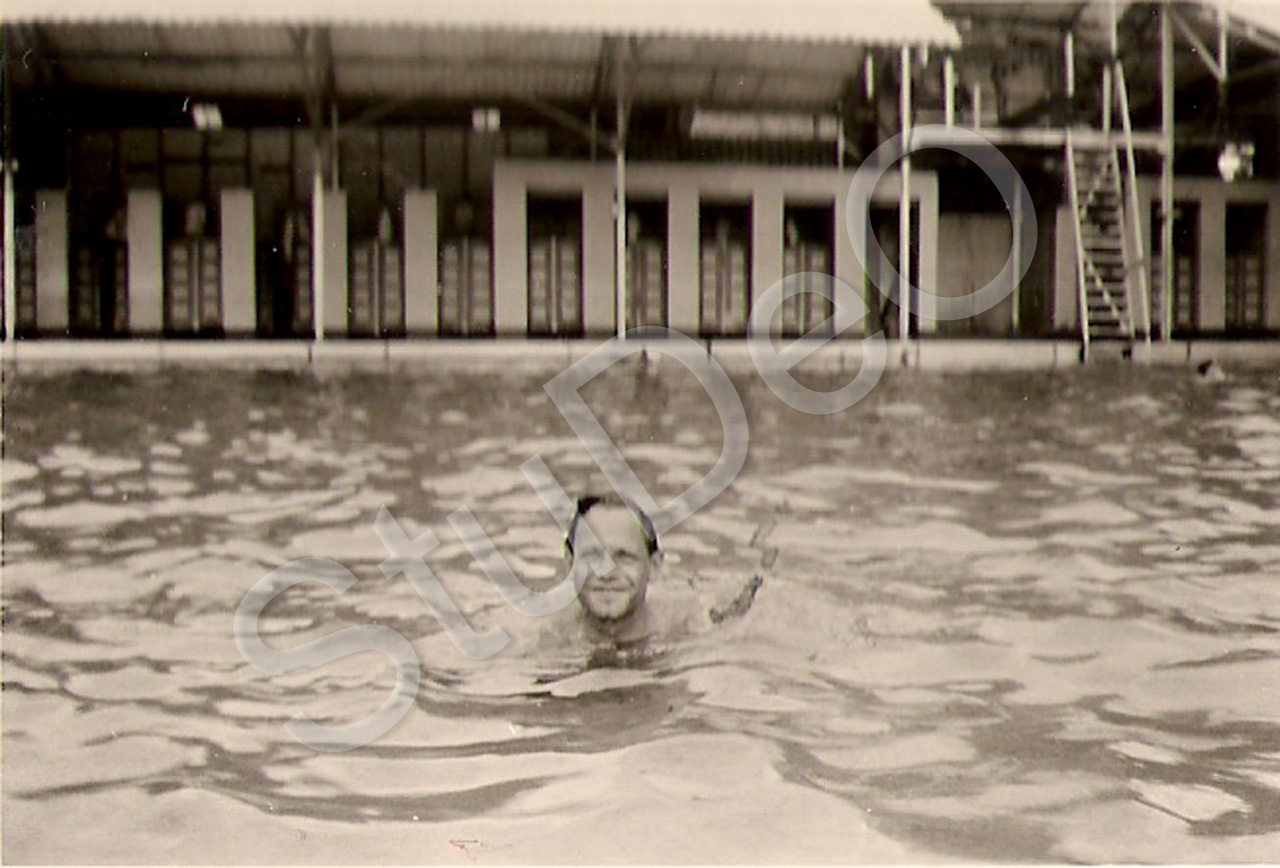 Beschreibung: Fred Mittag im Schwimmbad „Branta“ in Surabaja. Hoch­zeits­reise A. und F. Mittag.