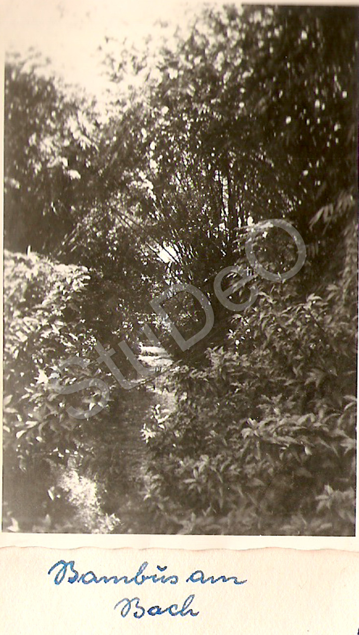 Beschreibung: Bambus am Bach beim Ausflug nach dem berühmten botanischen Garten in Bogor, südlich von Djakarta in den Bergen am 19.05.1954.