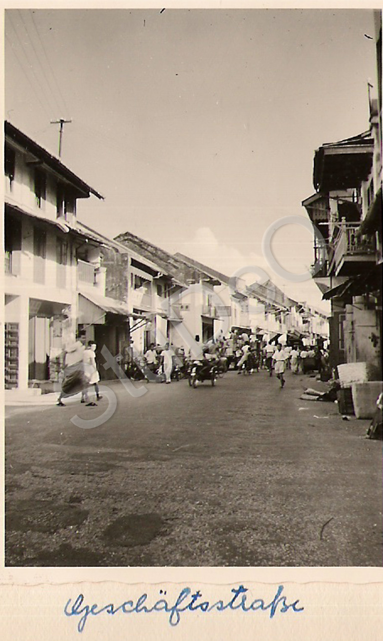 Beschreibung: Geschäftsstraße in Makassar. Hoch­zeits­reise A. und F. Mittag am 30.05.1954.