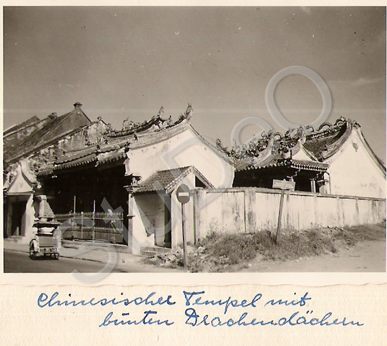 Beschreibung: Chinesischer Tempel mit bunten Drachendächern in Makassar am 30.05.1954.