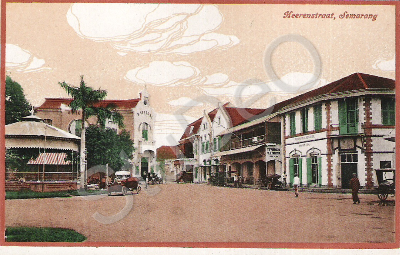 Beschreibung: Postkarte zeigt die Heerenstraat in Semarang, Sumatra.