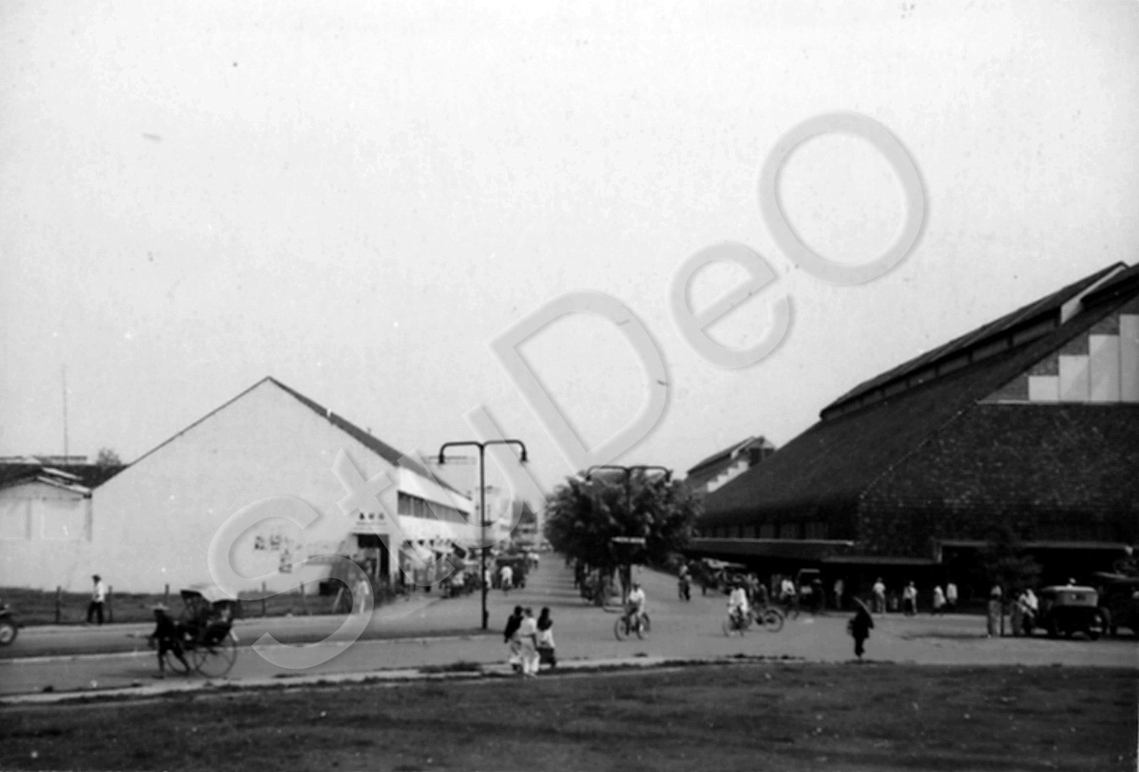 Beschreibung: Die große Markthalle in Medan, Sumatra. Vier solcher Gebäude stehen da.