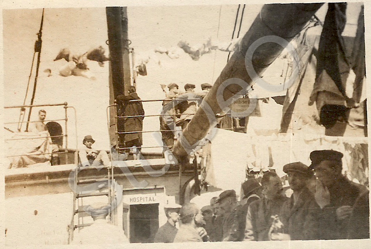 Beschreibung: Fahrt mit der „Atreus“, englisches Frachtschiff für die Repatriierung von Deutschen aus China notdürftig umgebaut. Diverse Momente an Bord.