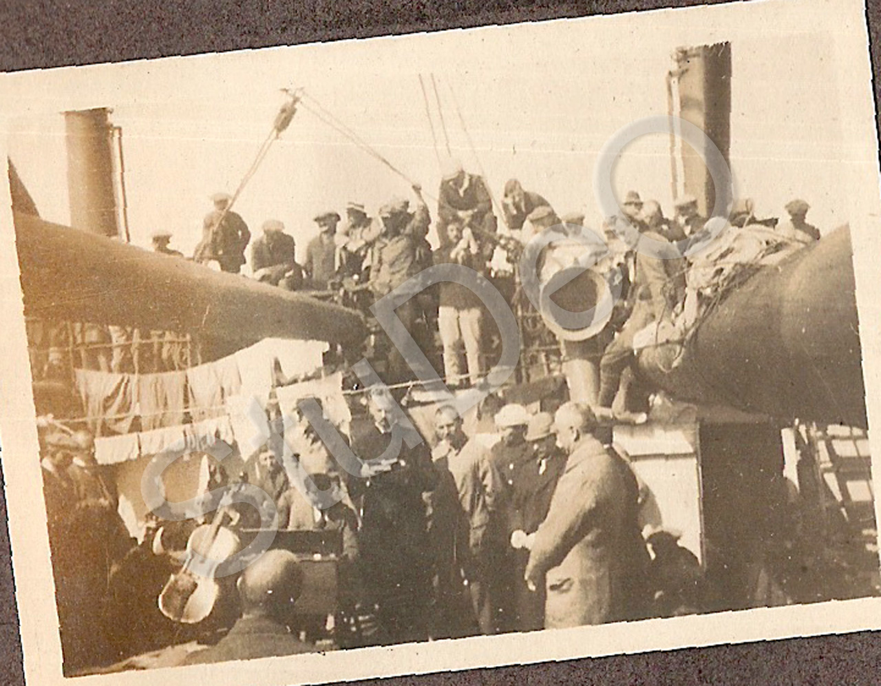 Beschreibung: Fahrt mit der „Atreus“, englisches Frachtschiff für die Repatriierung von Deutschen aus China notdürftig umgebaut. Diverse Momente an Bord.