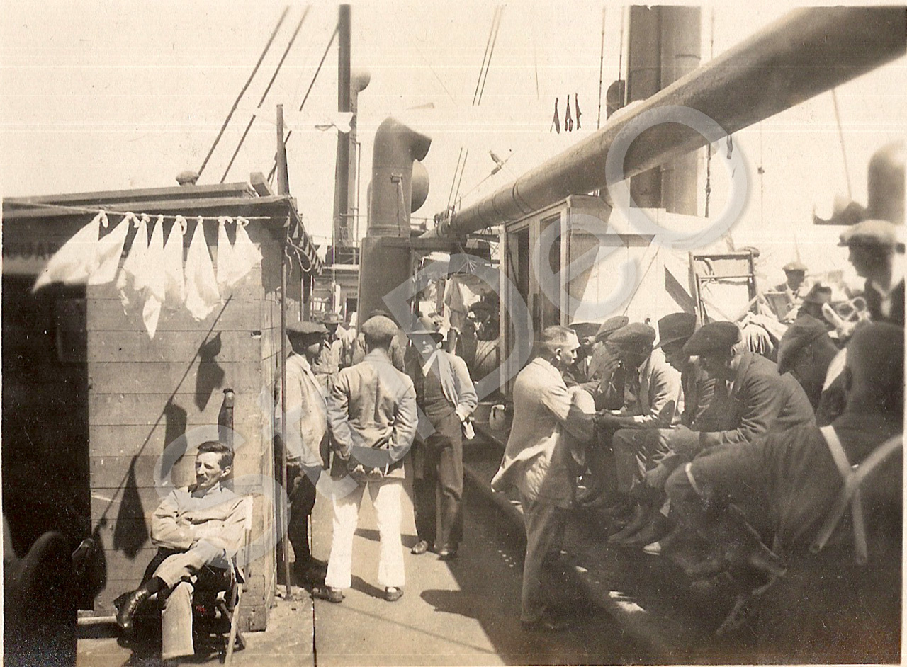 Beschreibung: Fahrt mit der „Atreus“, englisches Frachtschiff für die Repatriierung von Deutschen aus China notdürftig umgebaut. Diverse Momente an Bord.