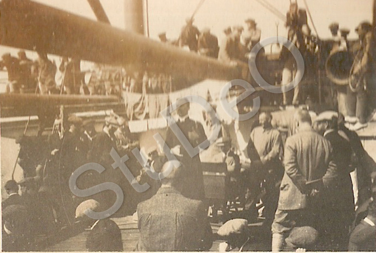 Beschreibung: Fahrt mit der „Atreus“, englisches Frachtschiff für die Repatriierung von Deutschen aus China notdürftig umgebaut. Diverse Momente an Bord.