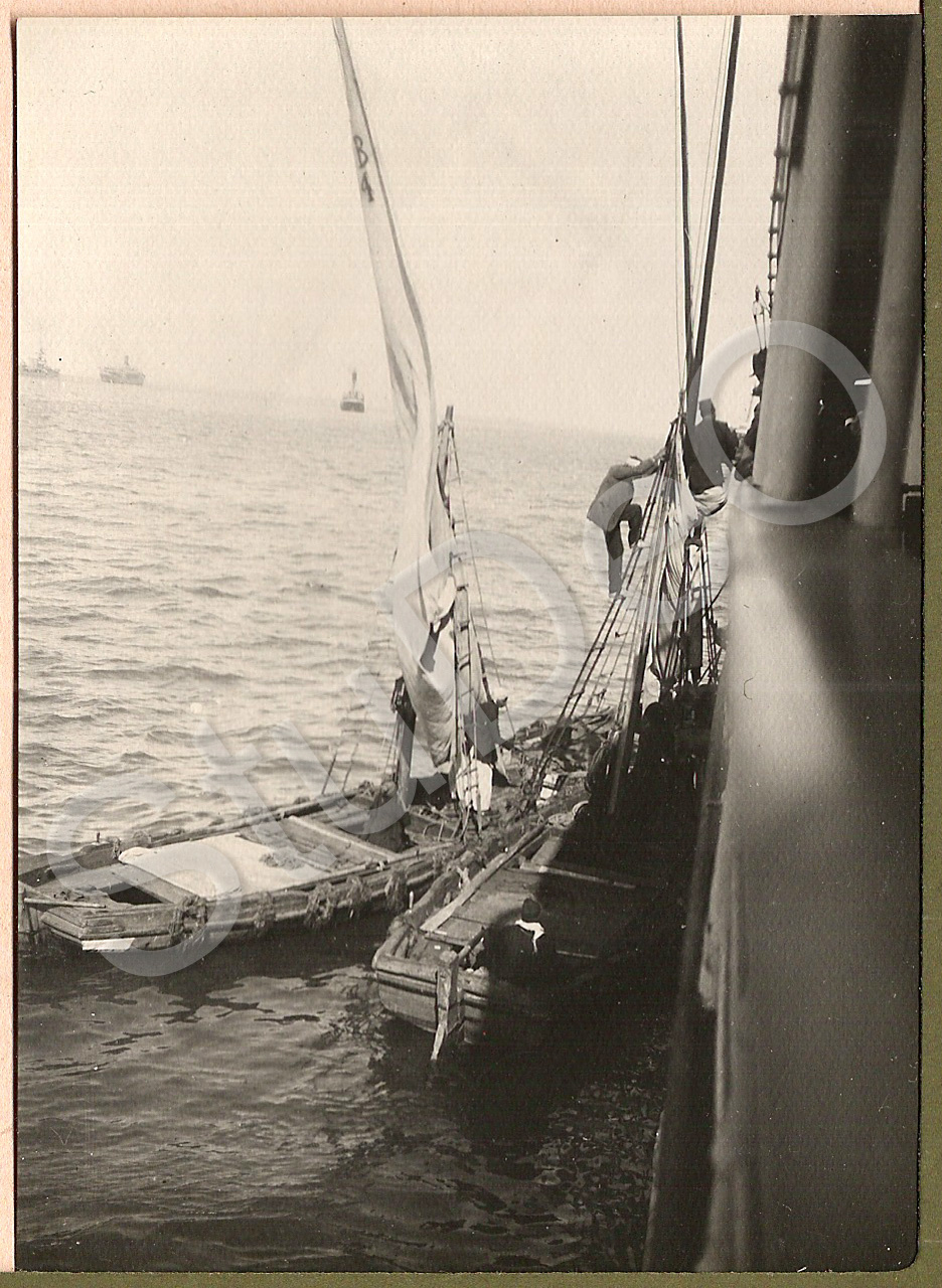 Beschreibung: Auf der „Rembrand“. Sicht auf an den Dampfer nahenden Segelschiffen. Im Suez Kanal.