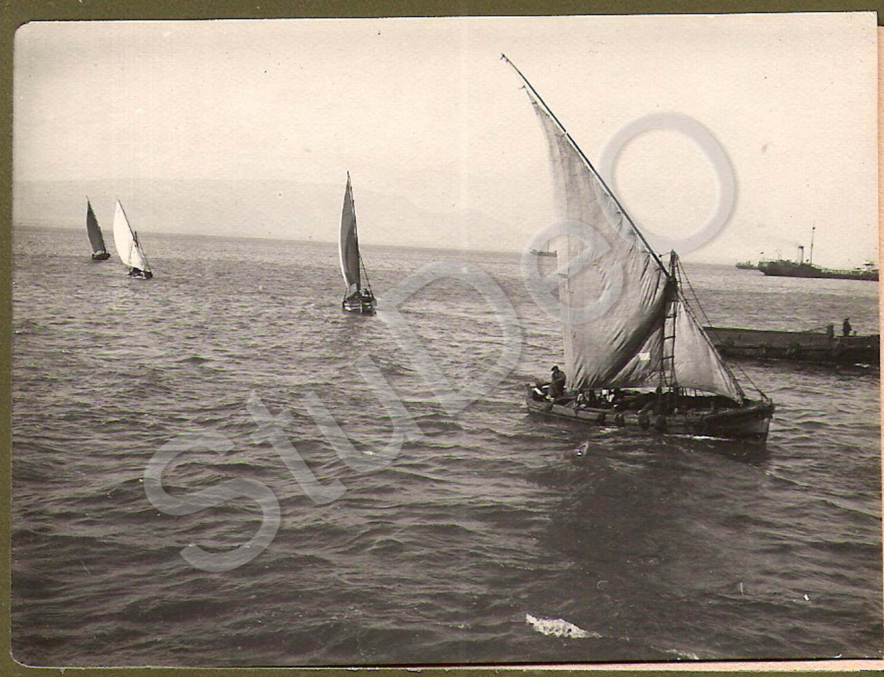 Beschreibung: Auf der Fahrt mit der „Rembrand“. Segelschiffe.