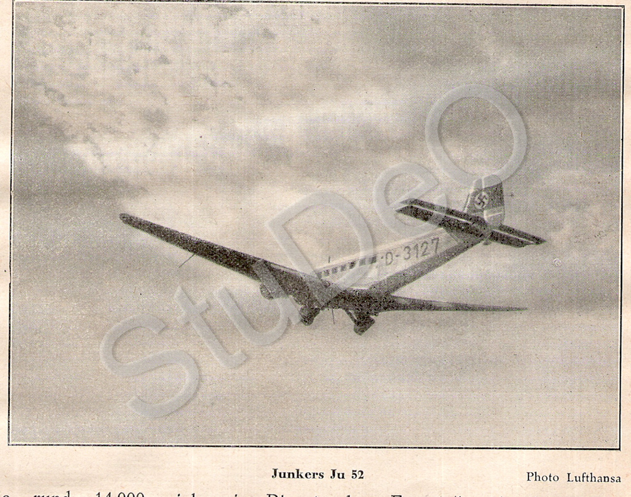 Beschreibung: Flugzeug von Junkers, die Ju 52 D-3127 auf einem Flug.