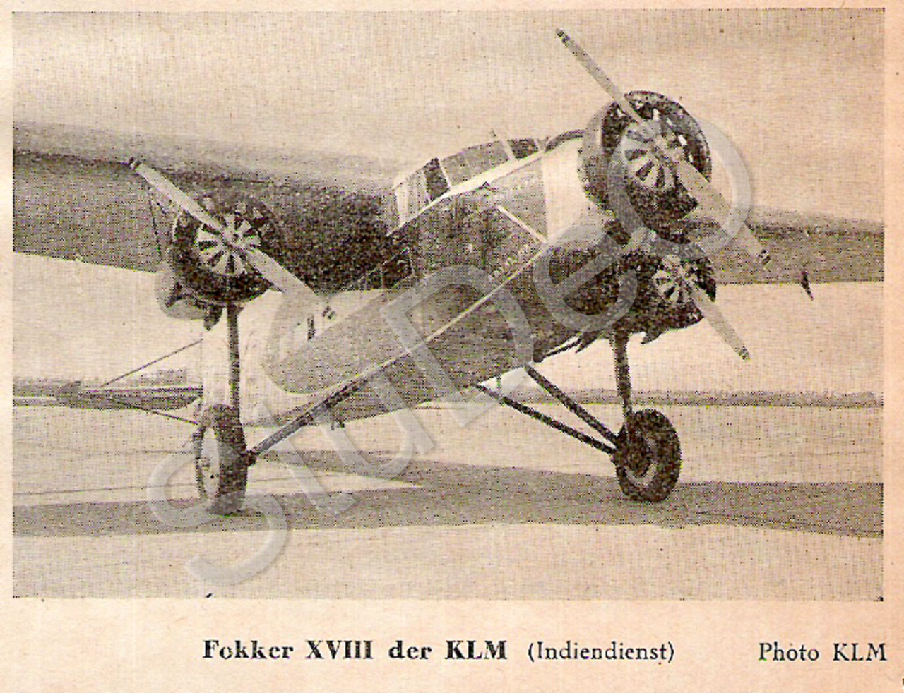 Beschreibung: Flugzeug Fokker der KLM (Indiendienst).